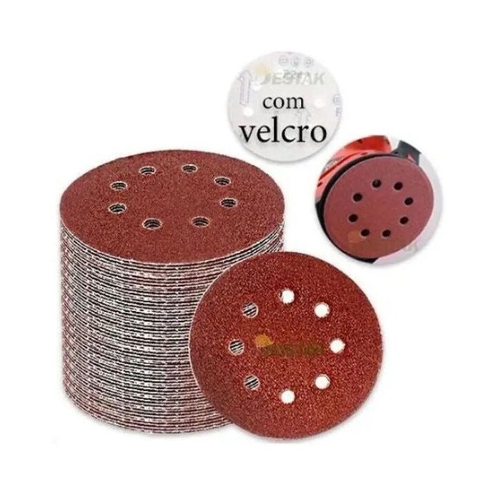 Kit 100 Discos de Lixa com Velcro 125mm Grão 80# e #100