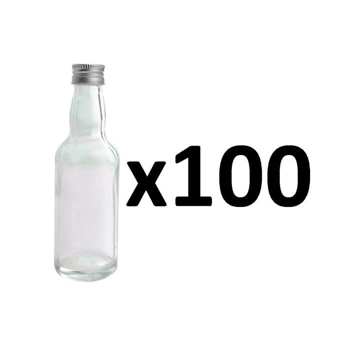 Kit 100 Garrafinhas de Vidro 50Ml com Tampas de Alumínio Prata