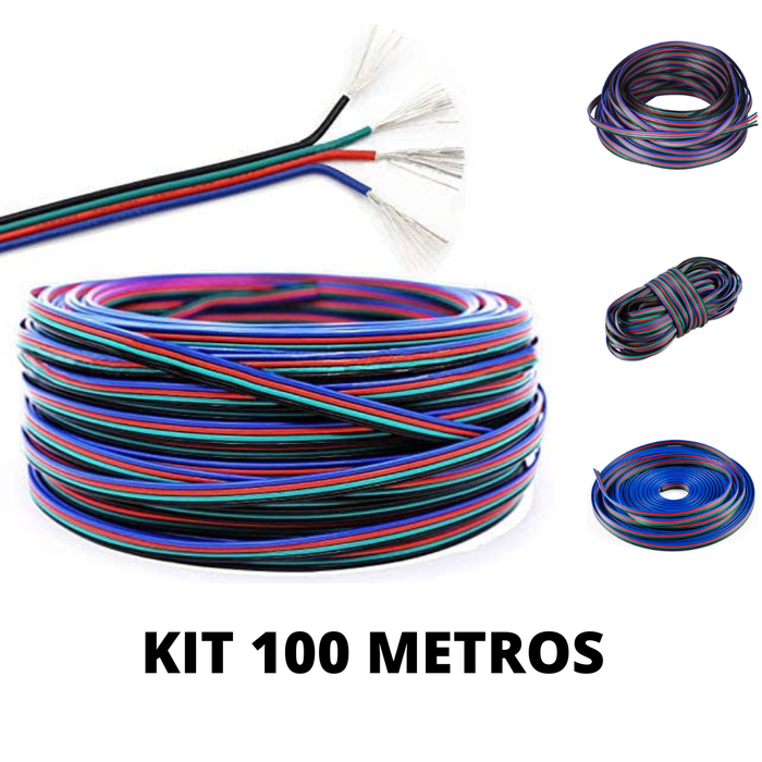 KIT 100 Metros Cabo Flat Polarizado RGB Fio 4 Vias 22AWG