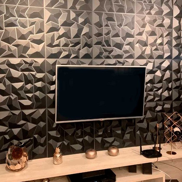 Kit 100 Placas Revestimento de Parede PVC 3d Alto Relevo Diamante Preto Preto