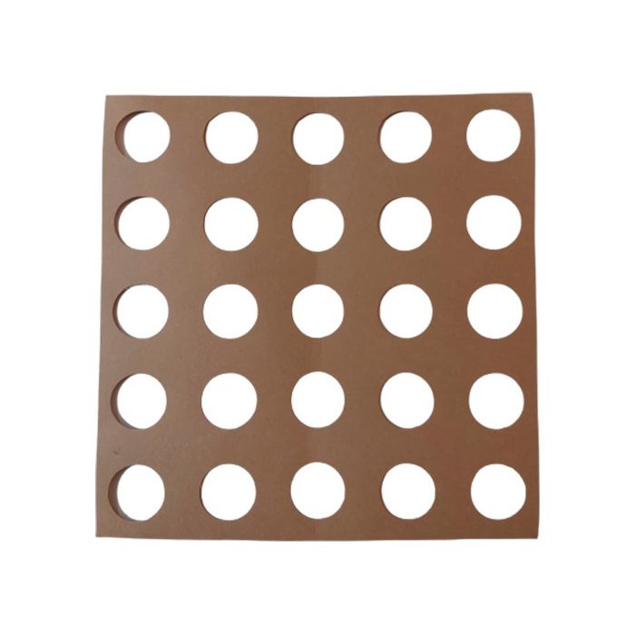 Auxilia no momento da fixação dos pisos táteis, feita por meio de fita dupla face ou cola específica com o auxílio de gabarito.