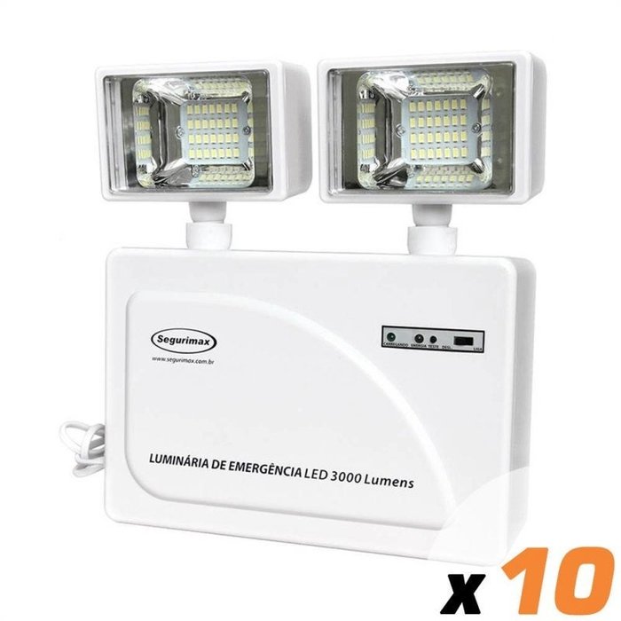 Kit 10x Luminária Emergência Segurimax LED 2 Faróis 3000 Lumens
