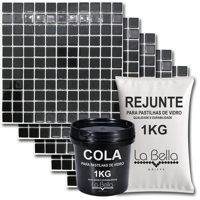 Kit 11 Pastilhas de Vidro Preta+cola+rejunte Branco Preta