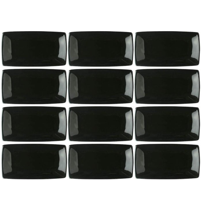 Kit 12 Bandejas Rasas 22cm Porcelana Germer Prato Sushi Preto Oriental Sashimi.