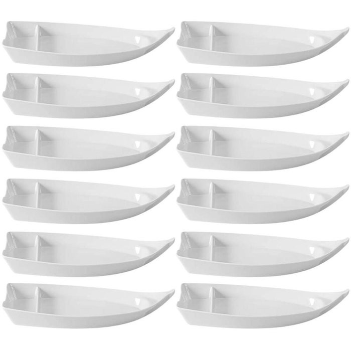 Kit 12 Barca para Sushi Comida Japonesa Melamina Branca Profissional Gourmet Mix