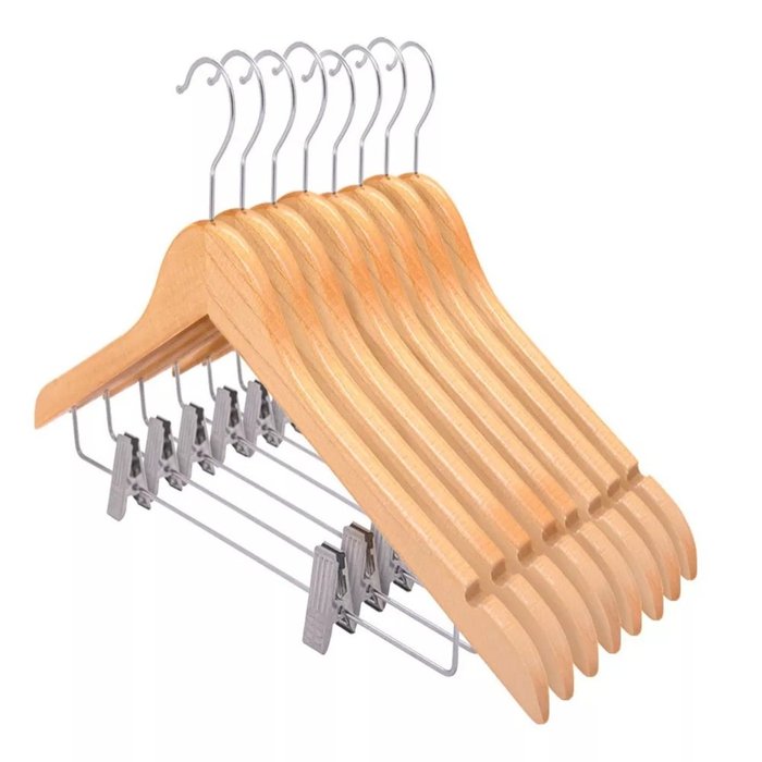 Cabide Livon é fabricado em madeira com gancho de metal, o que faz dele um modelo bem resistente e ideal para roupas pesadas como casacos, ternos. Seu design clássico é perfeito pra quem gosta de qualidade e elegância, sendo a melhor maneira para organizar lojas, quarto, guarda-roupa e closet. Fabricado em alta qualidade possui um acabamento perfeito que não vai puxar ou desfiar suas peças.