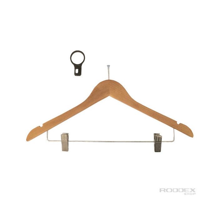 Cabide em Madeira Clara com Presilhas e Sistema Antifurto
