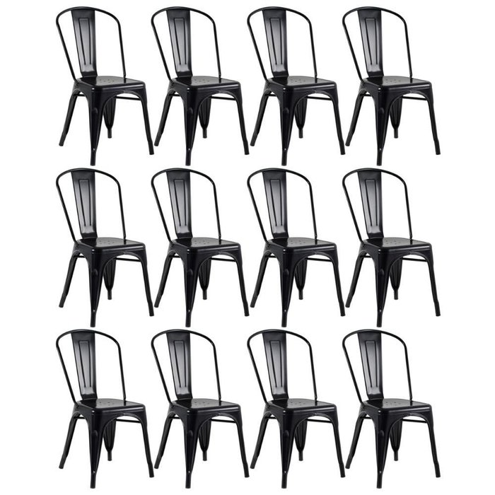 Kit 12 Cadeiras Iron Tolix - Preto Brilhante