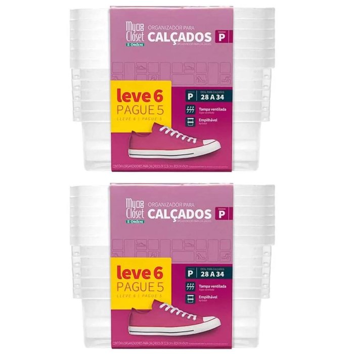 O kit com 12 caixas de sapato ordene pequena, ideal para sapatos de numeração entre 28 e 34, oferece uma solução prática e eficiente para organizar e proteger calçados de forma empilhável e visível. Feitas em material transparente, essas caixas permitem fácil visualização dos sapatos armazenados, facilitando a identificação rápida sem a necessidade de abrir cada caixa. As caixas possuem um design empilhável, otimizando o uso do espaço vertical no armário ou closet, permitindo que várias caixas sejam armazenadas de forma segura e sem desordem. Essas caixas de sapato são a solução ideal para quem busca praticidade, organização e proteção para sapatos pequenos, oferecendo um sistema empilhável e de fácil manuseio para otimizar qualquer ambiente.