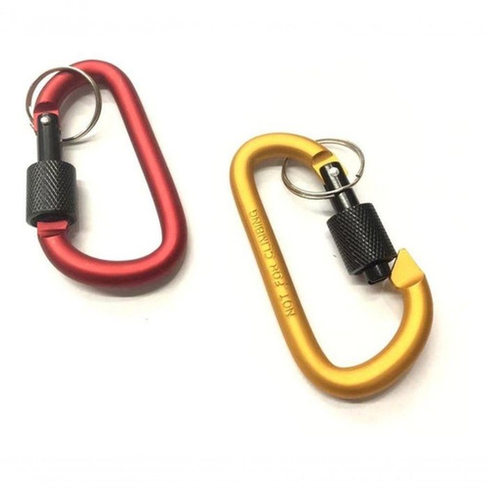 Contém a seguinte frase já gravada em um lado do chaveiro: NOT FOR CLIMBING, NÃO É PROFISSIONAL PARA ESCALADAS.