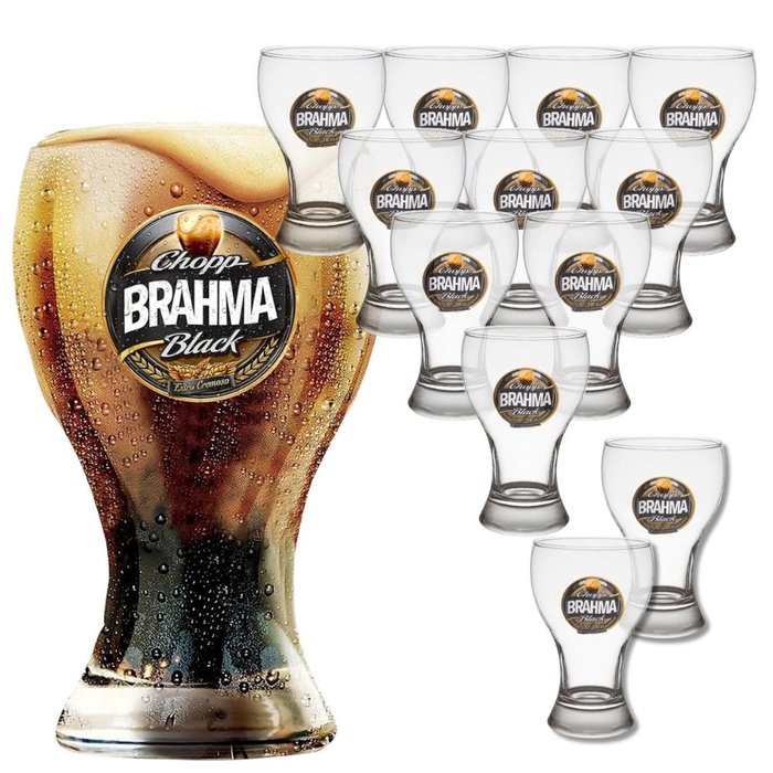 Kit 12 Copo Chopp Brahma Black Oficial Bar e Restaurante 430ml Vidro Resistente com Logo Cerveja