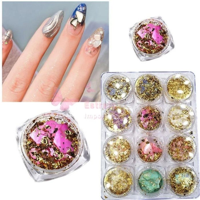Kit 12 Madre Peróla Com Fio De Ouro Decoração Unhas Acrigel