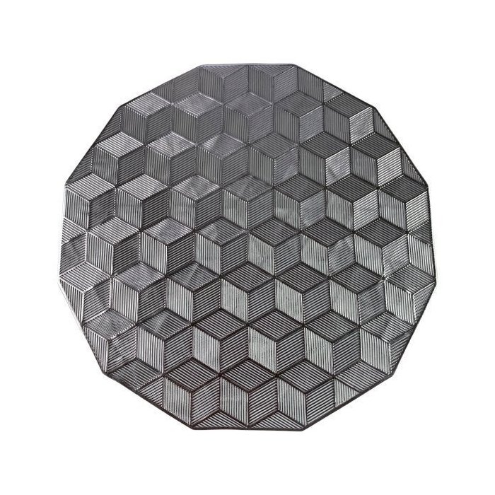 Kit 12 Pçs Lugar Jogo Americano Suplat Sousplat Vazado Prisma Prata Prata