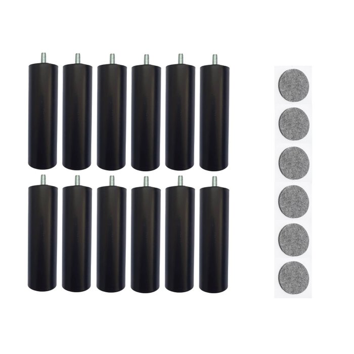 Kit 12 Pés de Cama Box ou Baú Queen King Tubo Preto 13cm C/ Feltro Protetor Adesivo Preto