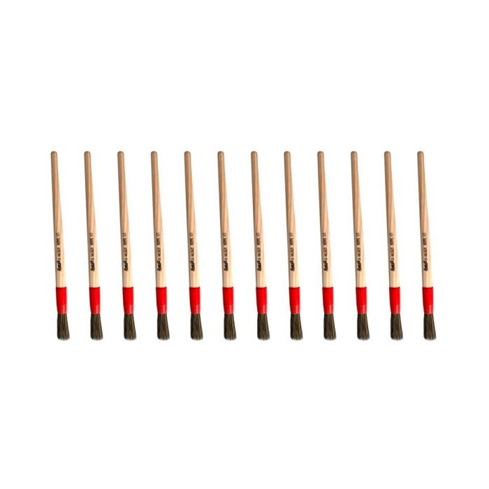 Pincel de cerdas brancas. Ponta redonda.Cabo curto de madeira natural extraída de floresta renovável.Para uso industrial/ halogenantes.Limpeza de painel, frisos, emblemas, rodas e outros.