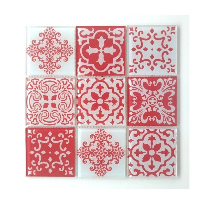 Kit 12 placas Pastilha De Vidro Ladrilho Vermelho 100% Vidro