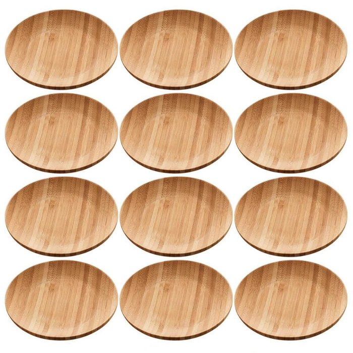 Kit 12 Pratos de Bambu Redondos 11cm Sobremesas Petiscos Lyor Mesa Posta Eventos.