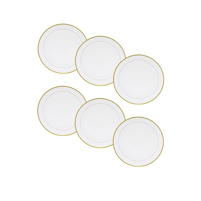 Kit 12 Pratos Descartáveis para Sobremesa 19cm de Luxo Silverplastic Branco com borda dourada