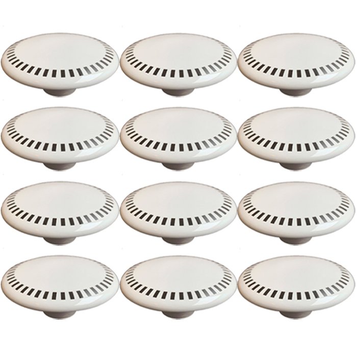 Kit 12 Puxadores em Cerâmica Redondo Branco com detalhe Preto para Móveis 6 x 6 x 2.5 cm