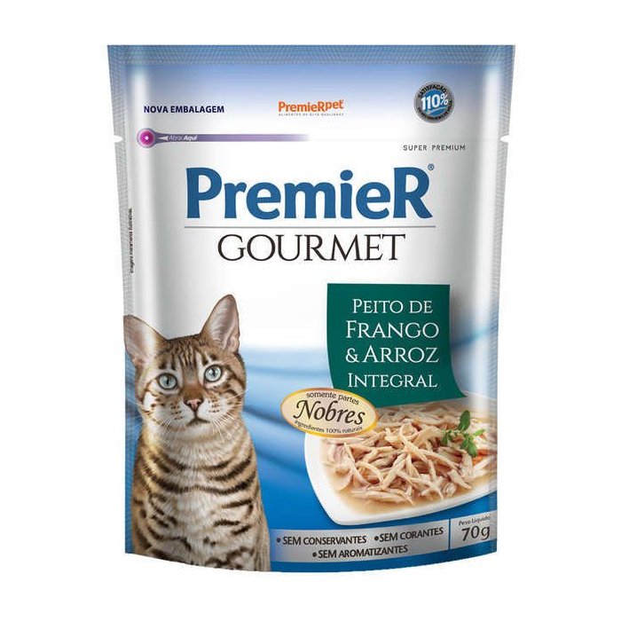 KIT 12 RAÇÃO ÚMIDA PREMIER SACHE GOURMET GATO ADULTO FRANGO 70GR
