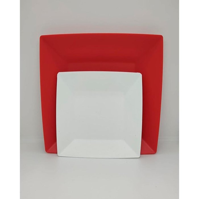 Kit 12 Prato Refeição vermelho + 12 Sobremesa Japones Quadrado Branco