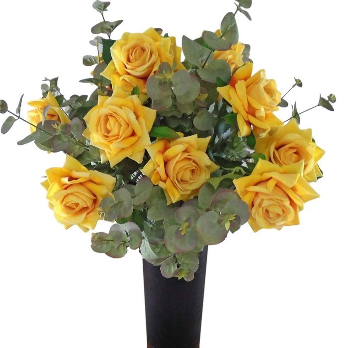 Kit 12 Rosas amarelas Aveludadas com folhagens de eucalipto