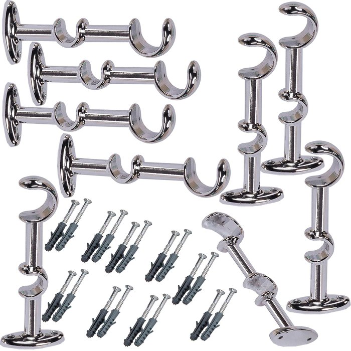 12 Suportes Duplo para Varão 28mm e 19mm Cromado