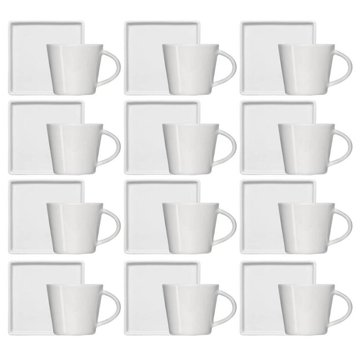 Kit 12 Xícaras de Café 90ml em Porcelana Branca com Pires Quadrado Germer