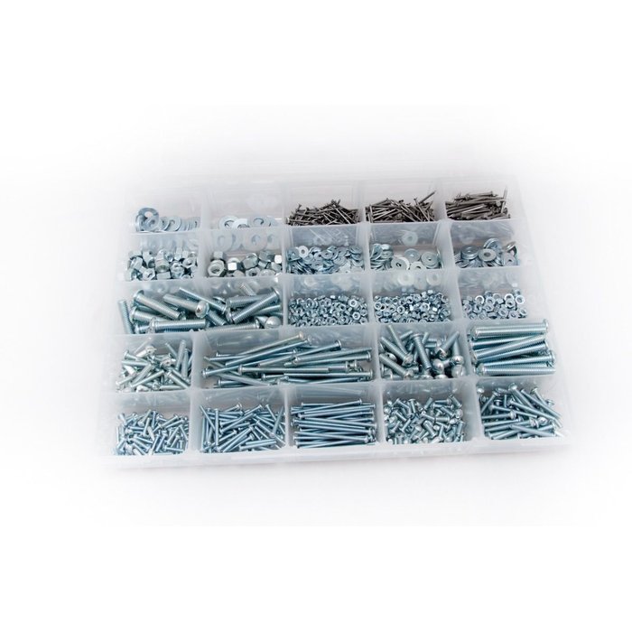 Kit multiuso, ideal para ter em casa. Já pensou em começar um reparo e ter que sair para comprar porcas e parafusos? O Kit Top de 1213 peças ajuda a resolver seu problema! E vem em uma caixa totalmente modulável!