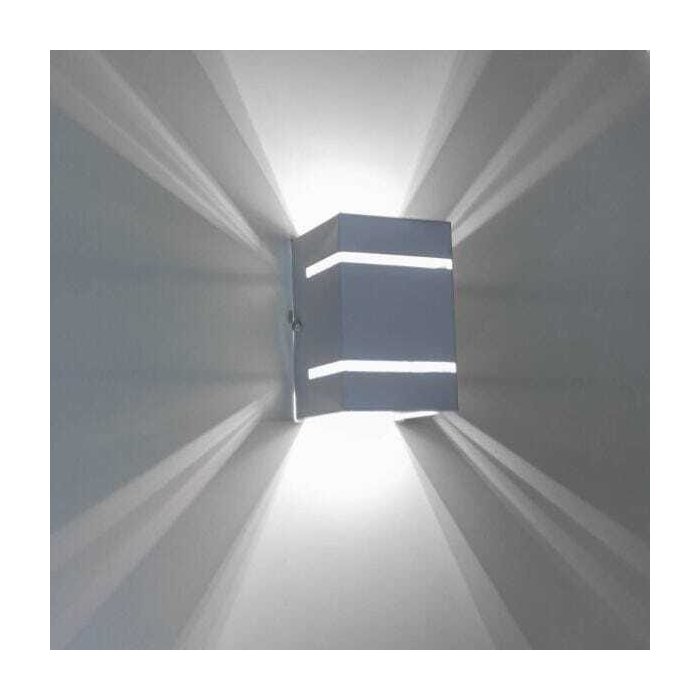Arandela com efeito de 2 fachos e frisos, cria um lindo efeito luminoso, extremamente resistente a sol, chuva e maresia.Produzida em alumínio não enferruja nunca. Ideal para ser usada em áreas externas e internas, fácil instalação. Sua pintura eletrostática confere extrema proteção e durabilidade.