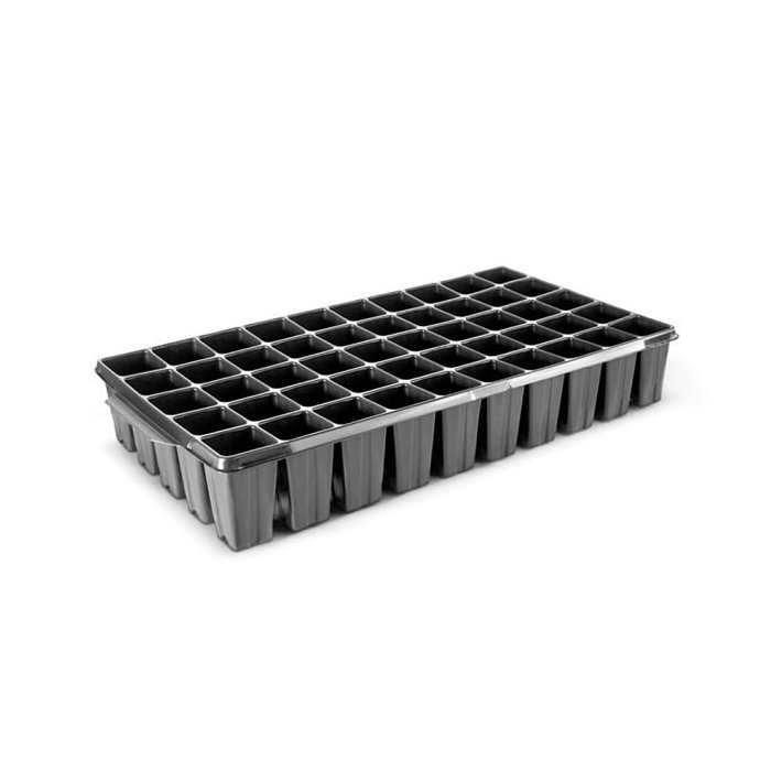 Bandejas para Cultivo NutriPlan com 50 Células Preto As bandejas para cultivo da NutriPlan, são utilizadas com pleno êxito no cultivo de diferentes tipos de plantas, flores e hortaliças. Oferece facilidade na semeadura e manuseio, com produção de mudas mais uniformes, melhor controle sanitário e nutricional, com maior produtividade. Medidas: Medidas da bandeja: - Comprimento: 55 cm - Largura: 28 cm - Altura: 8 cm - Capacidade : 6 Litros - Células: 50 Medida de cada célula: - Altura da célula: 8 cm - Diâmetro da célula: 4,9 cm - Furo da célula: 0,8 cm - Capacidade: 0,120 ml Imagens ilustrativas do produto