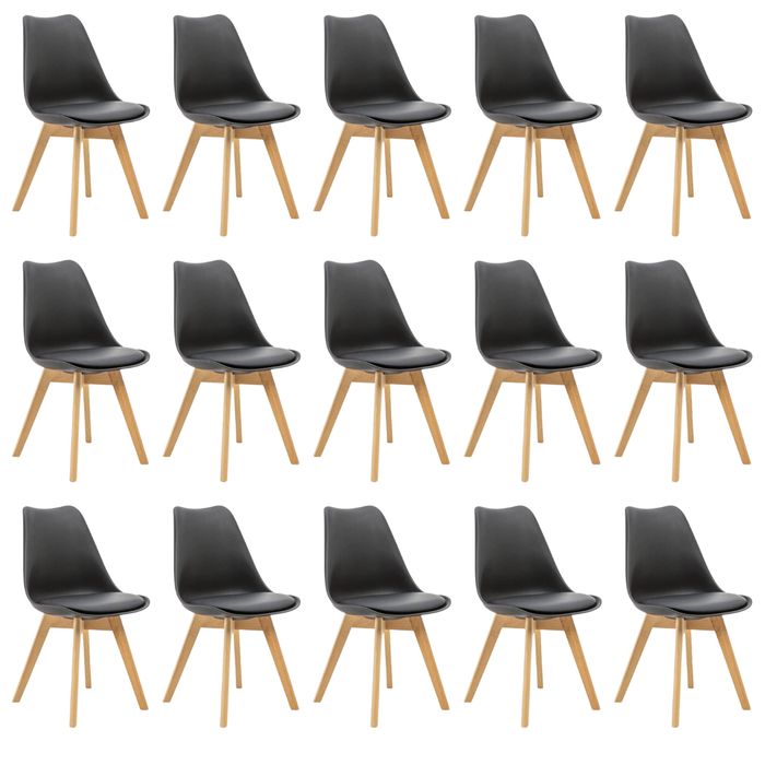 Kit 15 Cadeiras Estofadas Saarinen Wood Pés de Madeira Preto Preto