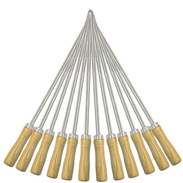 Kit 15 Espeto 30cm Lâmina Mini Espetinhos Churrasco Aço Inox