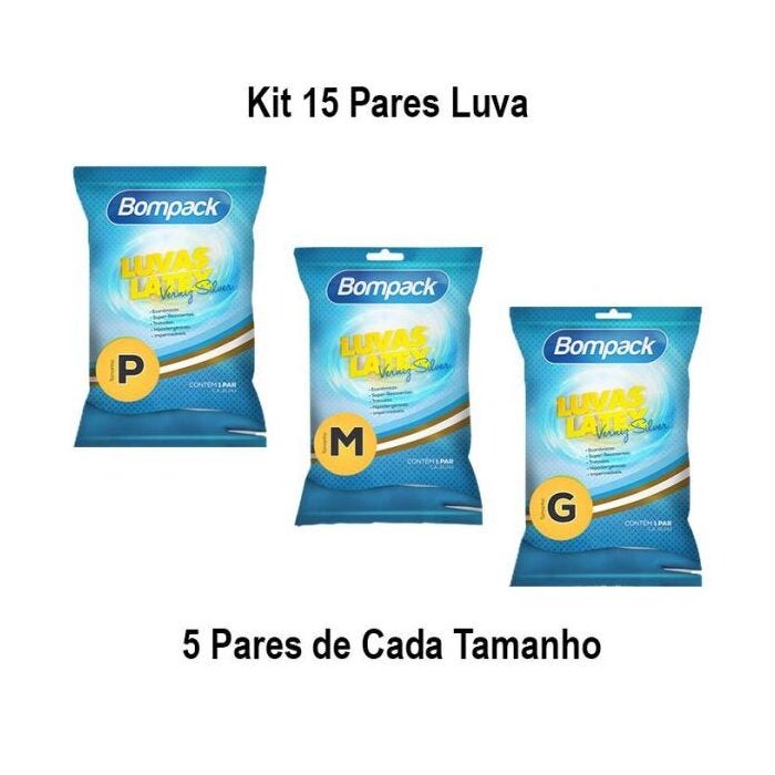 Kit 15 Pares Luva Latex Verniz Silver P/M/G 05 Pares P/Tam