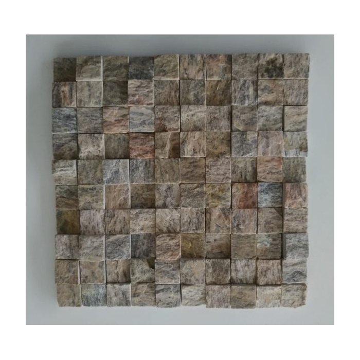 Mosaico de Pedra Madeira Rosa, ideal para aplicação em áreas internas e externas como como salas de Estar, churrasqueiras, quartos, jardins, fachadas e muros.