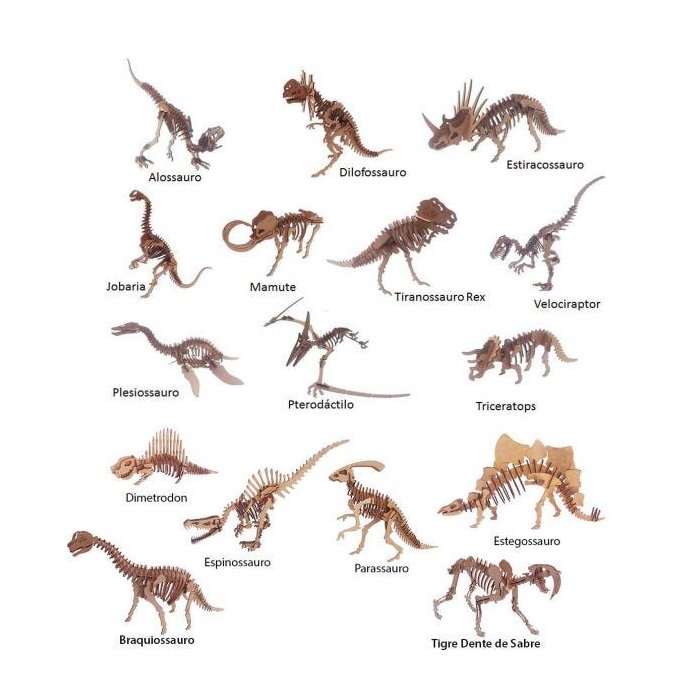 Kit 16 dinossauro mdf quebra cabeça 3d coleção dino jurassic