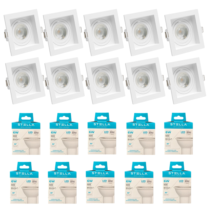 Kit 16x Spot Embutir Recuado Gu10 C/ Lâmpada Eco 6w Stella Cor:branco - Branco Frio