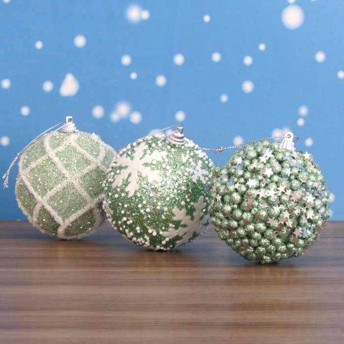 Ricas em detalhes e acabamento impecável com muito brilho e textura, são 3 modelos cuidadosamente selecionados para deixar sua Árvore de Natal com uma decoração única e sofisticada. O Verde é uma tendência na decoração natalina para este ano, e cria um ambiente com muita elegância e aconchegante. Com uma Árvore de Natal Verde, fica um lindo "tom sobre tom". Feitas em Poliresina, são bastante resistentes, e não há riscos de se quebrarem numa eventual queda ao chão.