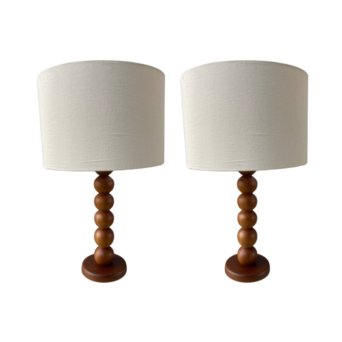 Kit 2 Abajur Bola Madeira Iluminação Aconchegante Cúpula Tecido