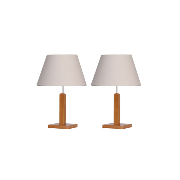 Kit 2 Abajur Quarto Pé Quadrado Madeira Mdf Cúpula Tradicional bege