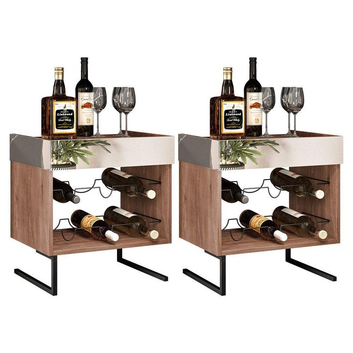 Kit 2 Adegas Industrial Com Espelho Ariel Demolição - Pallazio A Adega Ariel, é aquele mimo para o seu ambiente pois o mesmo é um produto desenvolvido com um alto nível de beleza estética e qualidade, pensado exatamente em complementar o seu ambiente, com três lindos espelhos, dois aramados com espaço para seis garrafas, estrutura do produto em BP de 15mm que oferece ao produto mais resistência à umidade, riscos, mofo e bactéria, e este super material ainda viabiliza valores mais naturais em seu visual que similiarizam aos desenhos de madeiras naturais, pés estruturais em metal antioxidantes com pintura eletroestática. Toda mistura de materiais abre um mundo diferente de conceitos no que se refere a Design, e aqui está um produto que na sua criação foi pensado em você, no moderno, no atual, no conceito industrial de ser, na visão de que não se pode privar a criatividade de quem quer fazer um belo ambiente.