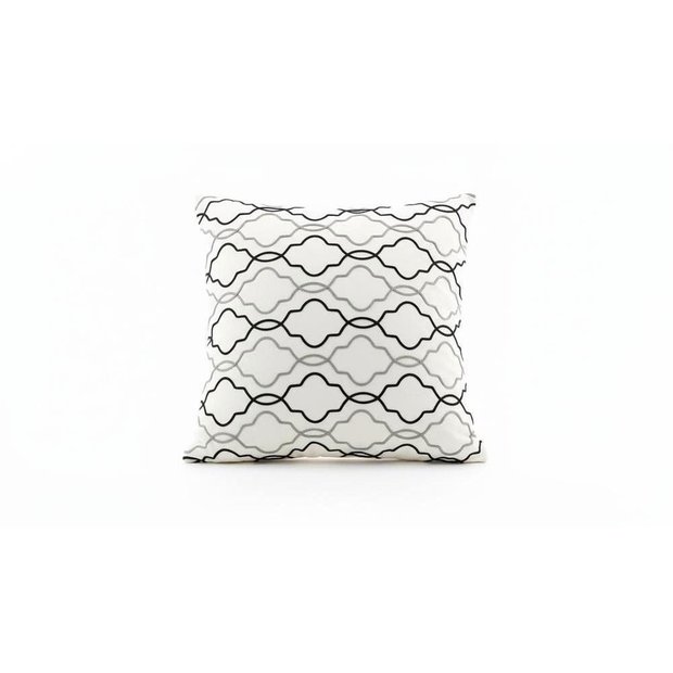 Renove seu ambiente com este elegante kit de almofadas. Fabricadas em jacquard bege de alta qualidade, as peças apresentam um design geométrico moderno com linhas em tons de cinza e preto.