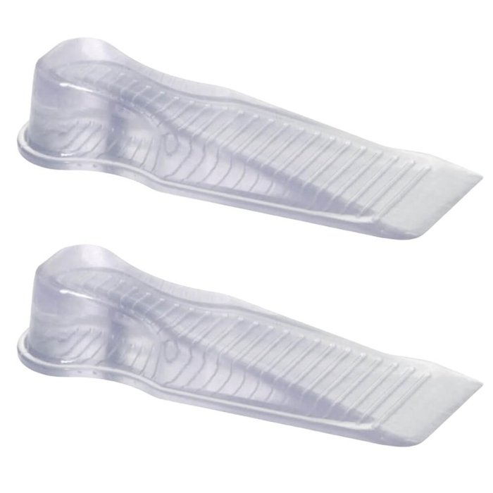 Kit 2 Aparadores Travas de Portas Segura PVC Transparentes 11x3,5x2cm Calço Chão.