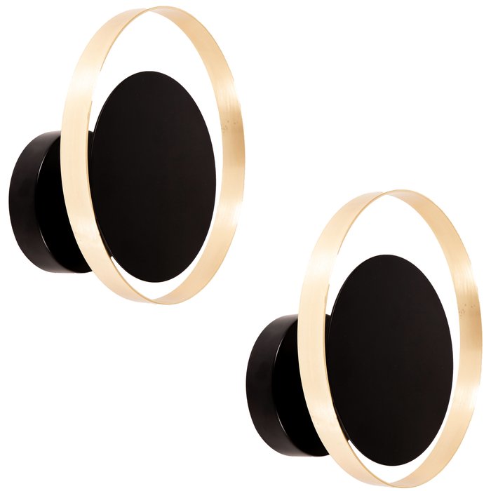 Kit 2 Arandela Arus Poptem Circular Preta e Dourada Plafon Aro de Alumínio