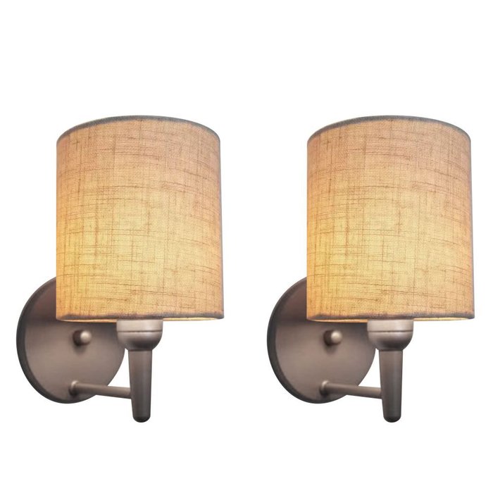 Kit/2 Arandela Cilindrica Md-2009 Base Cinza Cupula Tecido 14x15cm Rustico Bege