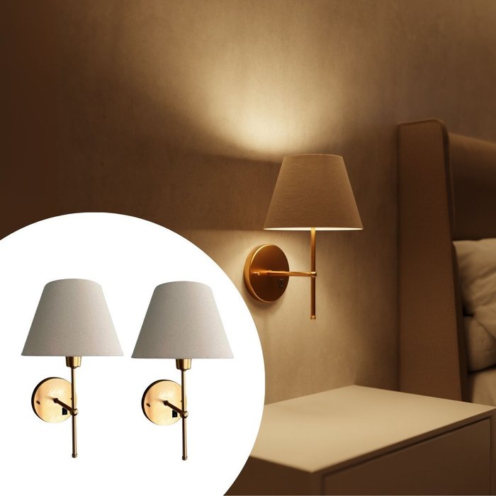 Kit 2 Arandelas de Parede Clássica Dourado com Interruptor Cúpula Bege Ref 19 Lâmpada Branco Quente