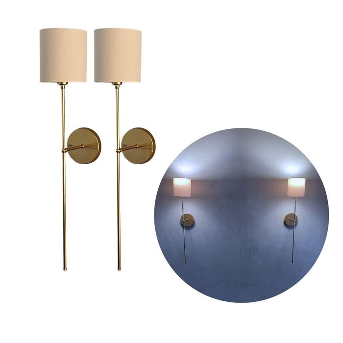 Kit 2 Arandelas de Parede Clássico Dourado com Cúpula Bege Ref 83 com Lâmpada Branco Frio