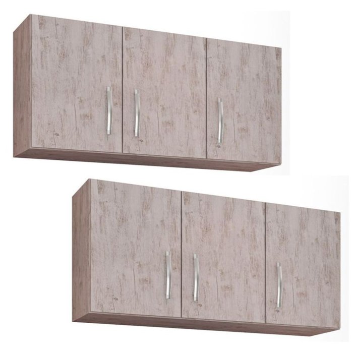Kit 2 Armários Aéreo Nathan 118cm 3 Portas Rústico - Nathy Móveis