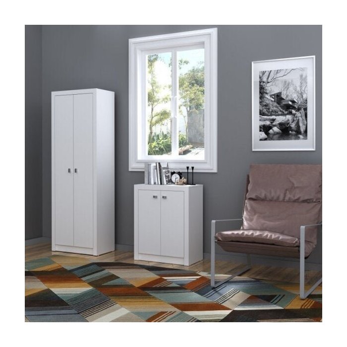 Kit 2 Armários para Escritório com Armário Multiuso Alto ME4105 e Armário Baixo ME4103 Branco