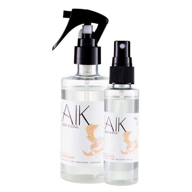O Aromatizador Purificante AIK Body & Soul tem como principal ingrediente ativo a sinergia dos óleos essenciais de Laranja Doce, Tea-Tree (Melaleuca), Ylang-Ylang e Limão Siciliano.